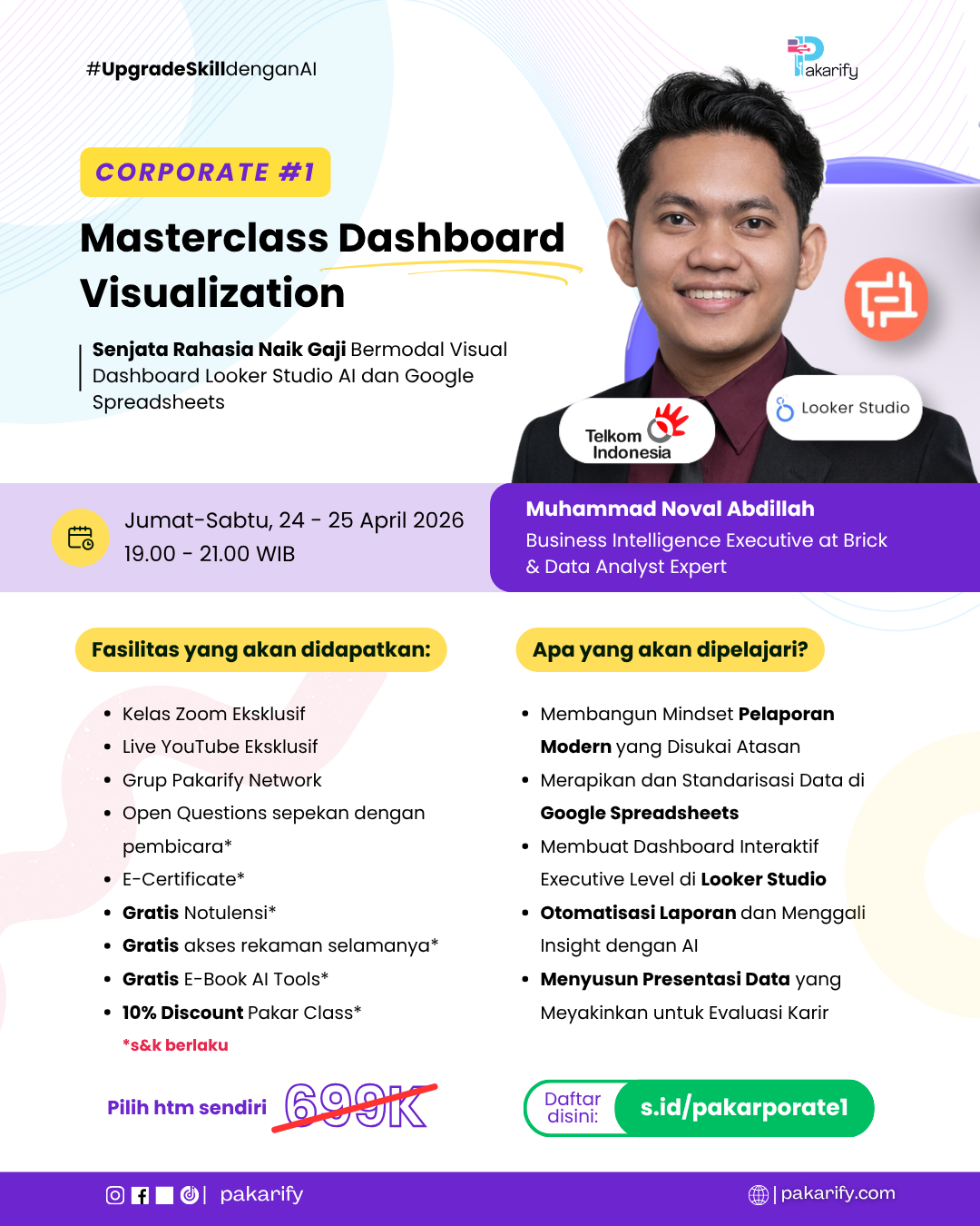 Di kelas ini, kamu akan belajar merapikan data di Google Sheets, menghubungkannya ke Looker Studio, membuat laporan real-time, dan memanfaatkan AI untuk menggali insight bisnis serta menyusun presentasi eksekutif yang lebih meyakinkan, menjadi bekal praktis untuk evaluasi kinerja, negosiasi kenaikan gaji, dan membuka peluang promosi.